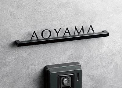 名前をより美しく表現する為に、ラインを細くしました。厚みを5㎜にすることで、強度と高級感がある表札に仕上がりました。